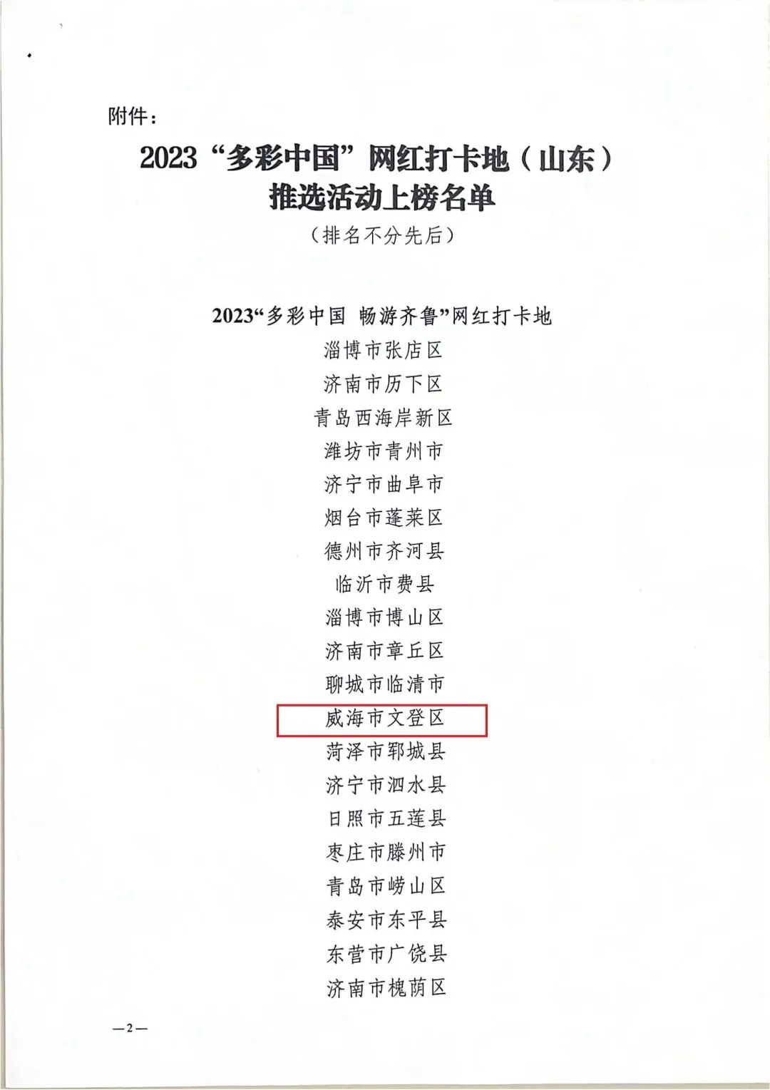 喜报!文登区入选2023“多彩中国 畅游齐鲁”网红打卡地