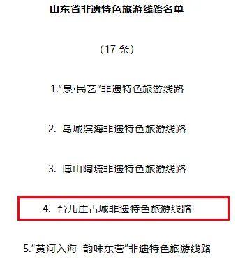 目前,景区已成为联合国教科文组织亚太地区非物质文化遗产国际培训中心枣庄基地、首个国家文化遗产公园、国家非物质文化遗产博览园、“创造未来文化遗产示范单位”,入选省非物质文化遗产传承教育实践基地,充分展现了景区以文塑旅,以旅彰文,非遗与旅游深度融合发展。近日,山东省文化和旅游厅发布通知,选出17条山东省非遗特色旅游线路,“台儿庄古城非遗特色旅游线路”入选。