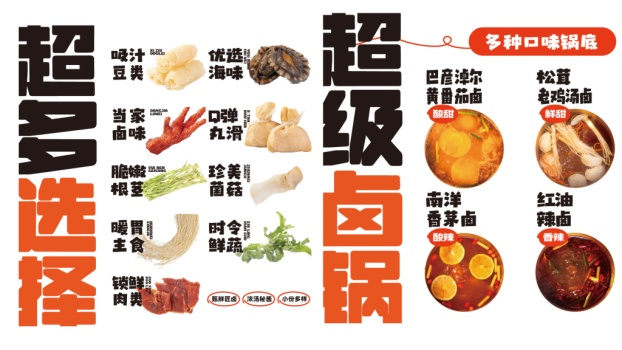 作为热卤领“鲜”者,出圈转转鲜卤火锅有黄番茄、香茅、红油辣卤、菌菇等多个口味的搭配组合,一锅一卤选择多,食材新鲜,性价比很高。独特的CIS设计和回转上菜、机器人AI送餐的消费体验,让消费者在别具一格的优雅环境中享受美食