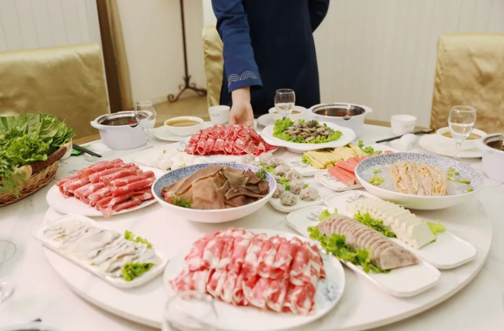 包括:营养锅底,调料,羊肉2份、蔬菜拼盘一份,鸭血、午餐肉、墨鱼丸,牛肉丸各一份。