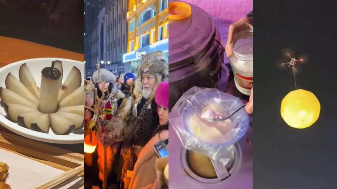 冻梨摆盘、豆腐脑加糖、人造月亮