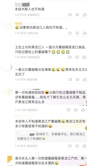 不少人直呼:“第一次听说”。有黑龙江网友表示,“我一个黑龙江本地人都不知道蔓越莓是自己家的”。