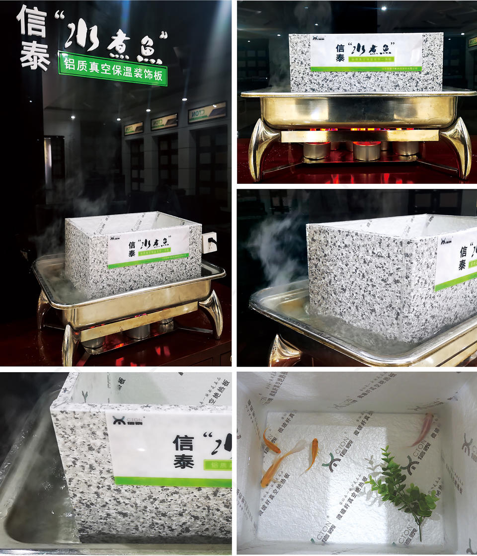 “这是我们的‘水煮鱼’试验,持续加热两天,真空绝热板内的水温也不会有明显变化。”吴维慧说。记者观察到,鱼缸外壳为大理石纹理的铝镁锰装饰板,内部则是只有一厘米厚的玻纤真空绝热板。