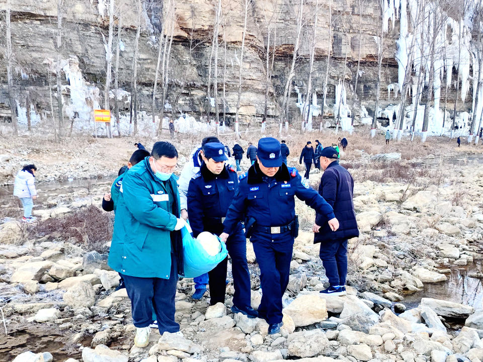 1月7日,枣庄市公安局山亭分局山城派出所民辅警在巡逻途中及时救助一名摔伤的游客,使其转危为安。