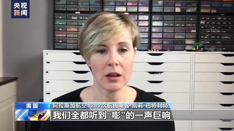阿拉斯加航空1282次航班乘客 凯莉·巴特利特:机组人员他们广播通知后没过多久,我们全都听到“嘭”的一声巨响,非常可怕,飞机瞬间被风和空气灌满。很吵,风很大,声音很大,可以听见外面的飞机引擎声,还有飞机内部的空气流动声,因为风全进来了。我很庆幸没有出现更坏的结果,就是这样。我时常还会想起当时的场景。