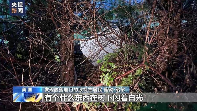 发现脱落舱门的波特兰居民 鲍勃·绍尔:当时天色已晚,我带上手电出门来到后院。那里很暗,因为我种了不少树。通过手电,我能看到有个什么东西在树下闪着白光,以前没有这种情况。于是,我走近仔细观察。显然,这是飞机的一部分,它与机身有着相同的曲度,上面有一个飞机的舷窗而且是白色的,所以它才会反光。