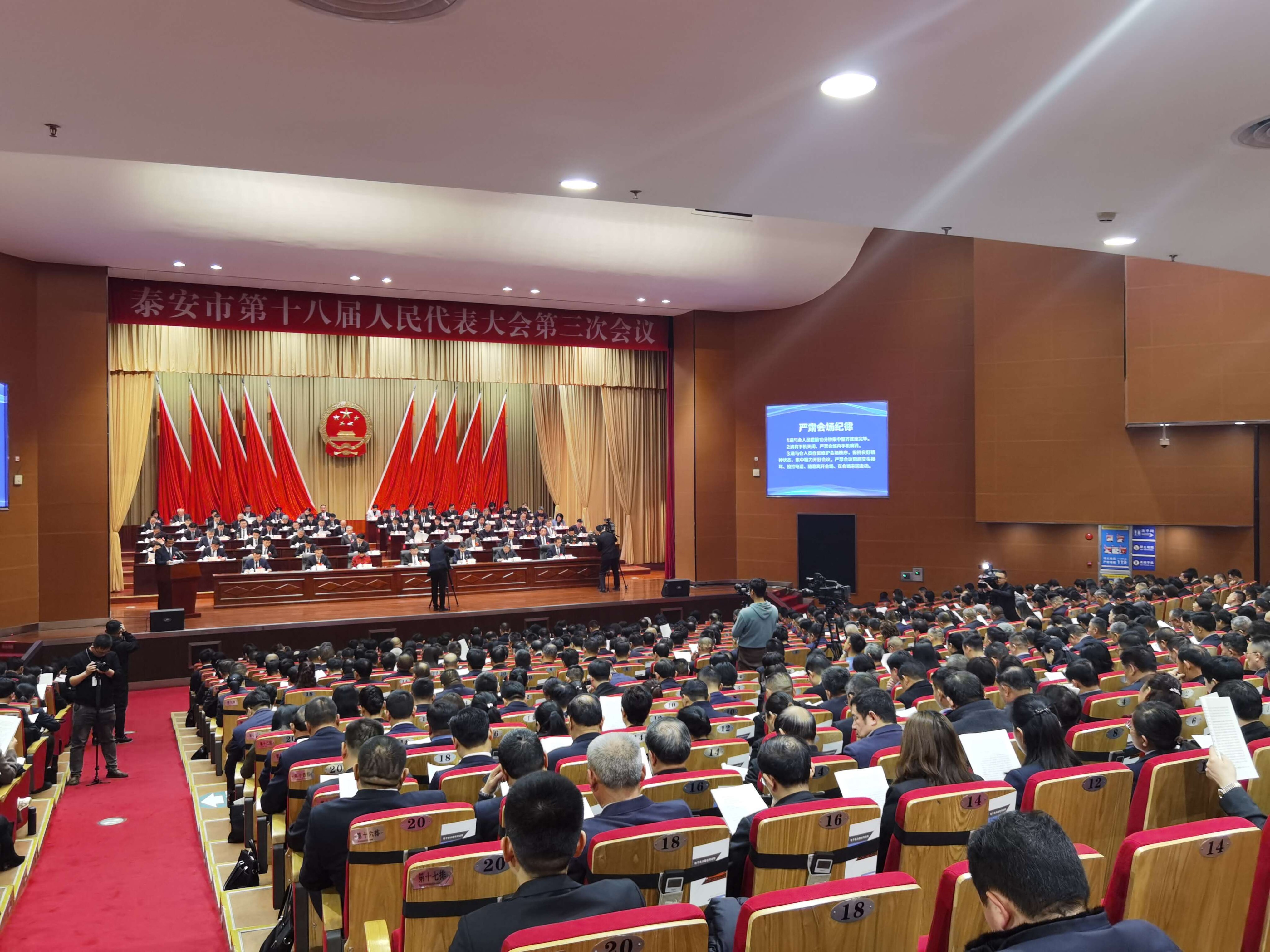1月12日上午9点,泰安市第十八届人民代表大会第三次会议在泰山国际会展中心开幕。市长李兰祥作政府工作报告。