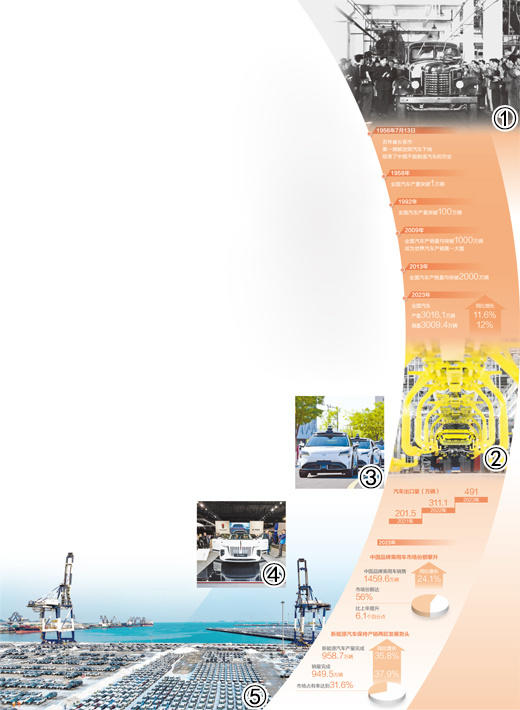 从蹒跚起步,到去年产销均首超3000万辆;从依赖进口,到海外市场份额不断扩大;从基础薄弱,到拥有完备的现代化产业体系、新能源汽车亮点纷呈……历经70余年发展,中国汽车制造业逐步壮大,成为工业经济稳增长的“压舱石”。放眼未来,随着我国汽车制造业发展水平和国际竞争力不断提升,汽车强国建设步伐将越迈越坚实。