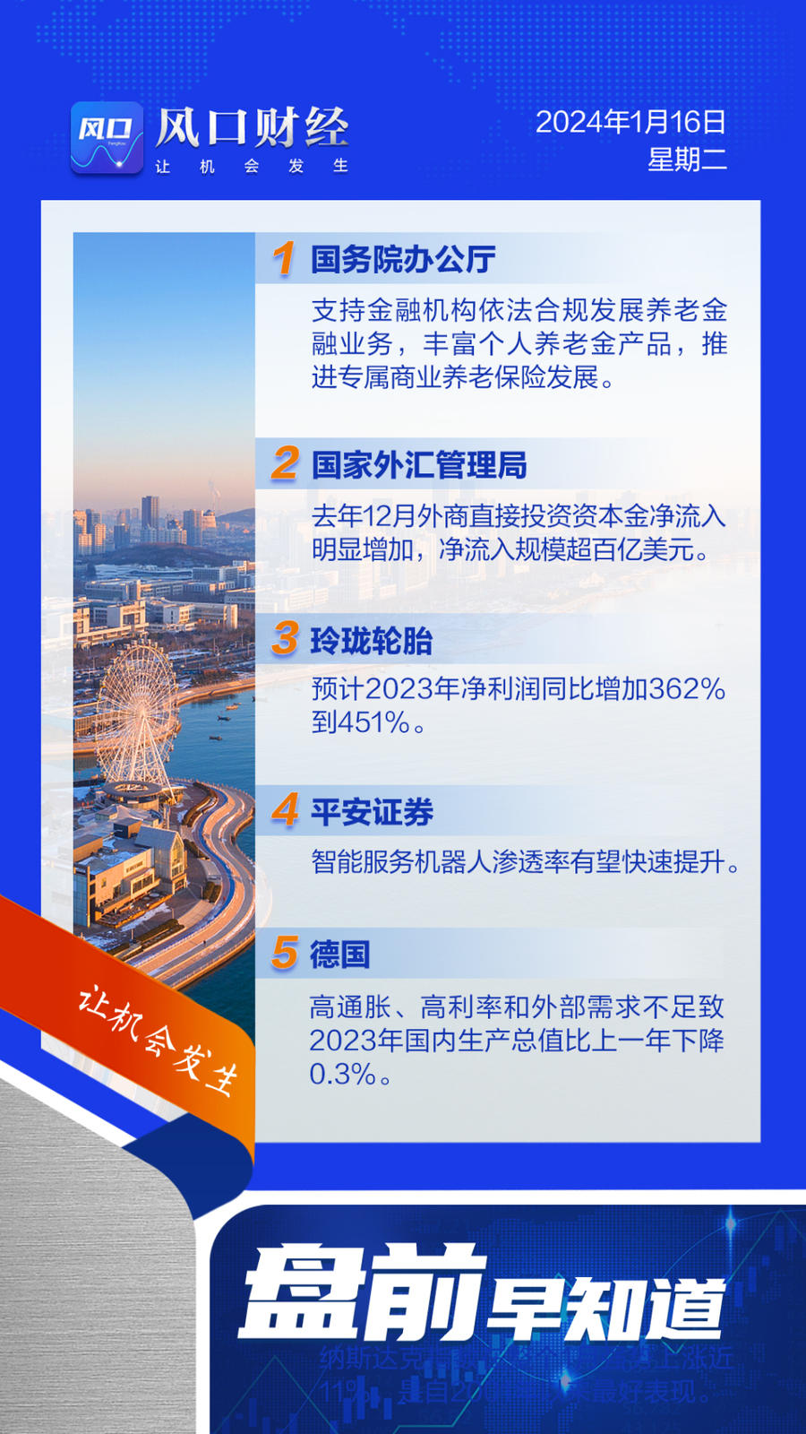 A股盘前:我国支持金融机构依法合规发展养老金融业务;去年12月外商直接投资资本金净流入超百亿美元