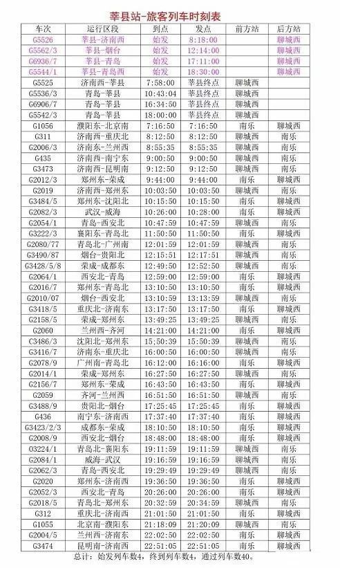 2024年1月10日零时起,全国铁路将实行新的列车运行图。调图后,莘县站新增到达城市:北京、青岛、武汉、威海、烟台、广州、贵阳、成都、西安。