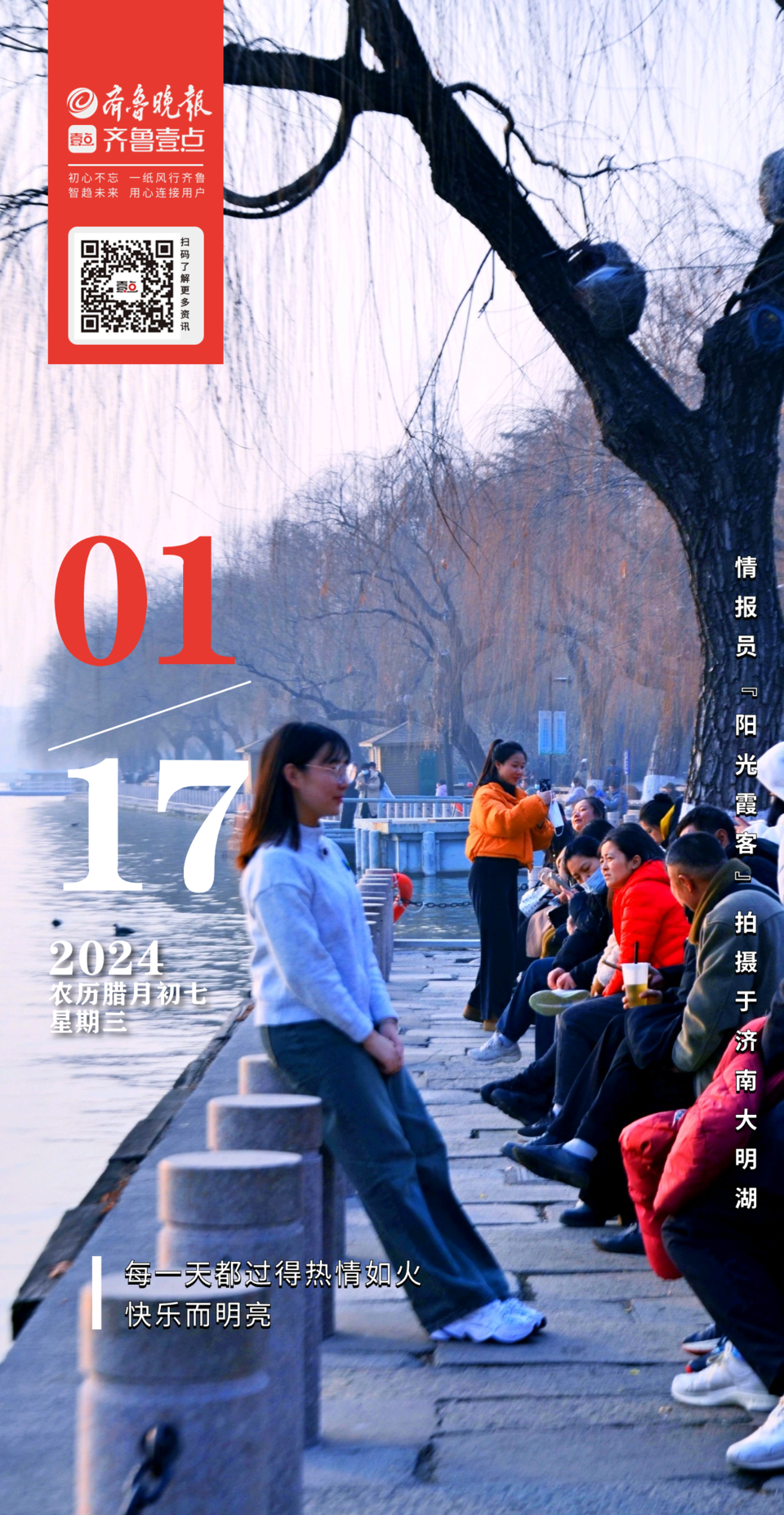 冬日的济南大明湖游人如织,湖中的荷花早已凋零,湖边的柳枝已然褪去了黄绿色的霓裳,舒展着妖娆的身姿,为明湖平添了冬日特有的诗情画意。