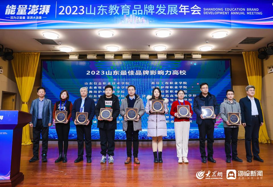 活动中,该学院凭借其卓越的品牌影响力和教育成果,荣获了“2023山东最佳品牌影响力高校”称号。两名宣传工作人员获得了“大众网·海报新闻2023年度优秀教育融媒体创作人”的殊荣。