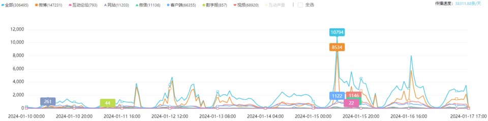 舆情走势图(图自齐鲁蛙眼舆情大数据平台)