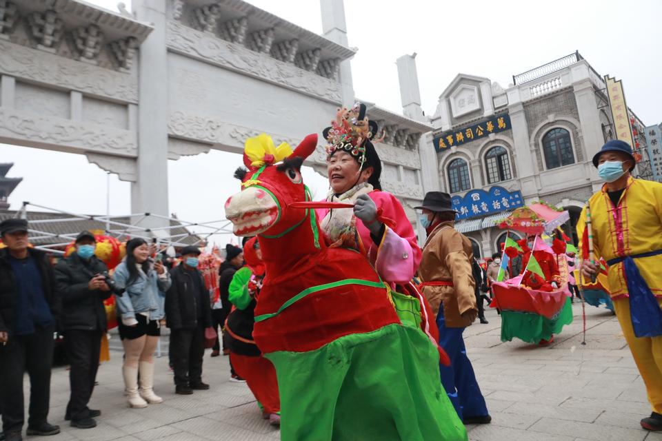开幕式上,气势恢弘的舞龙舞狮表演拉开了旅游节的序幕,喜庆气息扑面而来,过年的“仪式感”直线拉满。影视城内,刚出锅的炉包、香喷喷的烤地瓜、黏糊糊的年糕……吸引了不少游客品尝拍照,灯笼、中国结、香烛、贺年盆景、摆件挂件……年货目不暇接,手写春联、锣鼓秧歌、歌舞表演、舞龙舞狮、民俗展示等活动更是热闹非凡。