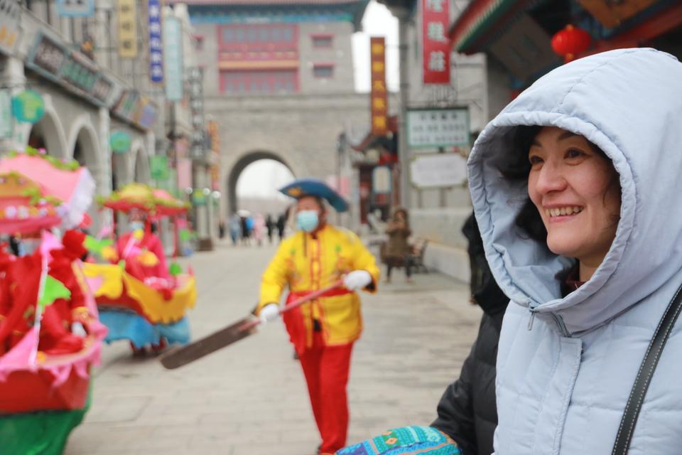 “来到这里感觉很好玩、很热闹,跟小时候过年一样,有很多好吃的,在离家近的地方,有一个可以吃喝玩乐的场所,感觉特别开心。”来自胶州市的游客圆圆说。