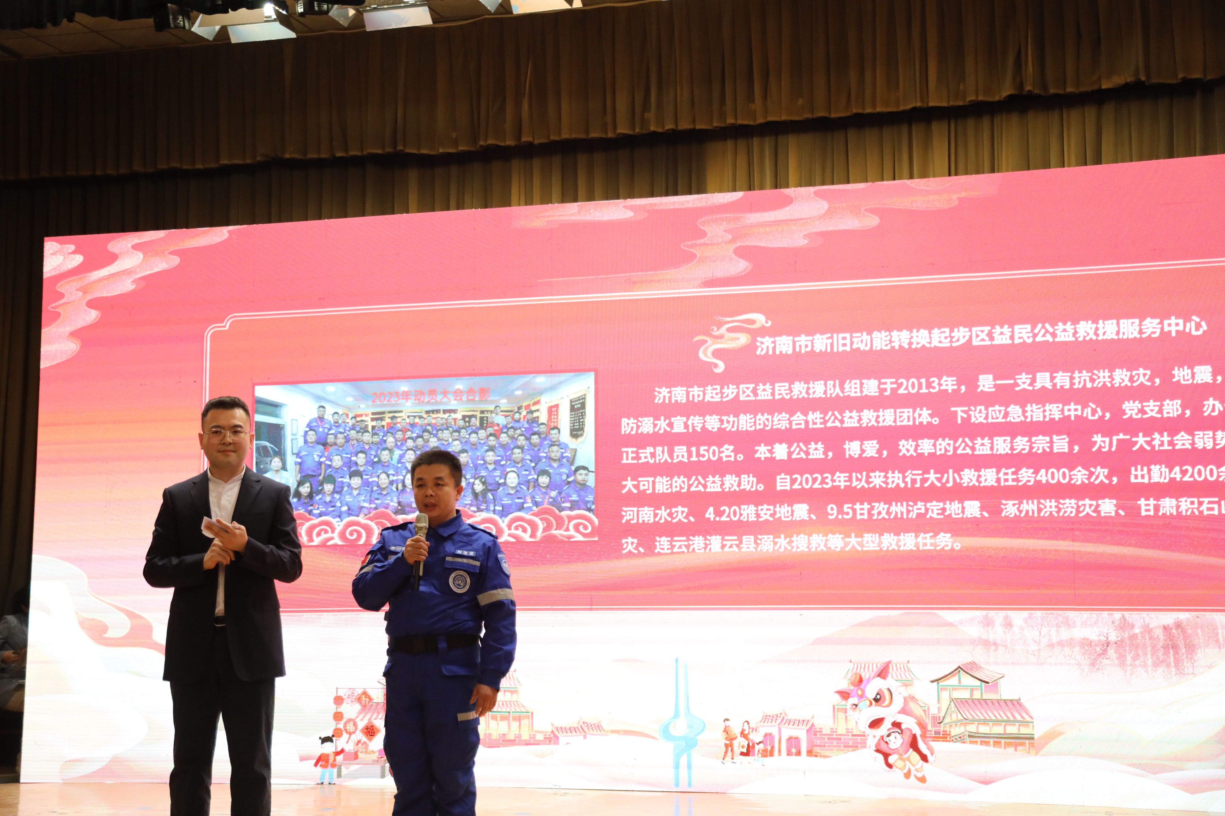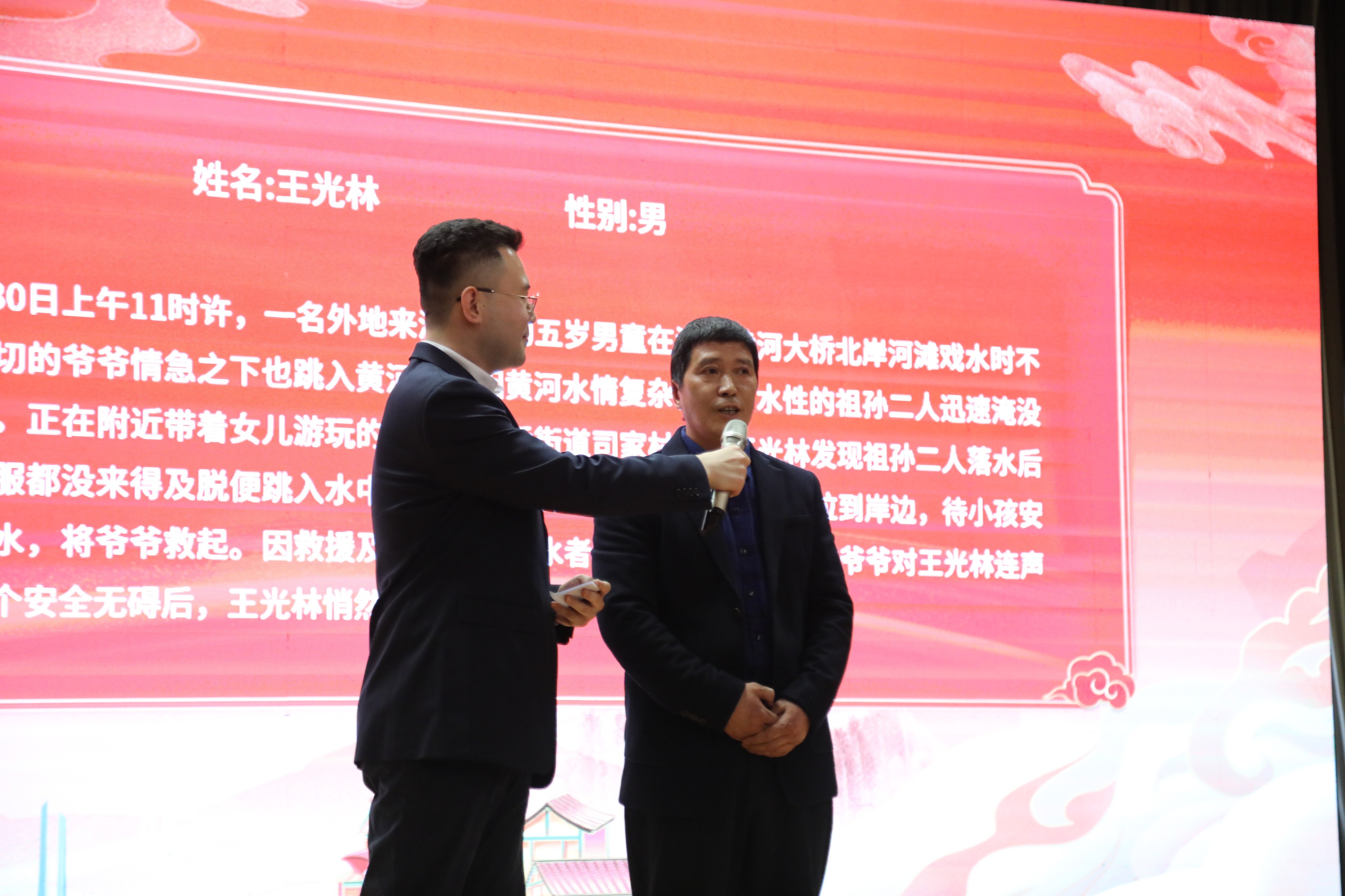 启动仪式还特设了观看拜年视频和现场采访道德模范及志愿者代表环节。邀请辖区各行业杰出代表,通过镜头向全区人民拜年。济南市见义勇为道德模范王光林和起步区益民公益救援服务中心志愿者代表刘汝昆分享了各自故事,他们的感人事迹令在场观众为之动容。省、市支持起步区建设工作专班,管委会机关工作人员,街道机关工作人员,群众代表共200余人观看演出。