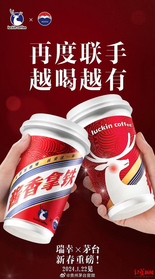 20日,贵州茅台(600519.SH)与瑞幸咖啡宣布,双方再度联名的新品将于1月22日推出。双方都未公布联名新品的细节,但成都市一家瑞幸咖啡门店店员告诉红星资本局,新品是酱香巧克力,不含咖啡,使用的酱香成分,和此前的酱香拿铁类似,为含有茅台酒的白酒风味厚奶。关于此次新品的价格,前述店员称,可能和之前标价38元/杯的酱香拿铁差不多,可以使用优惠券。对于此次新品的细节和价格,瑞幸方面截至发稿未回复红星资本局。