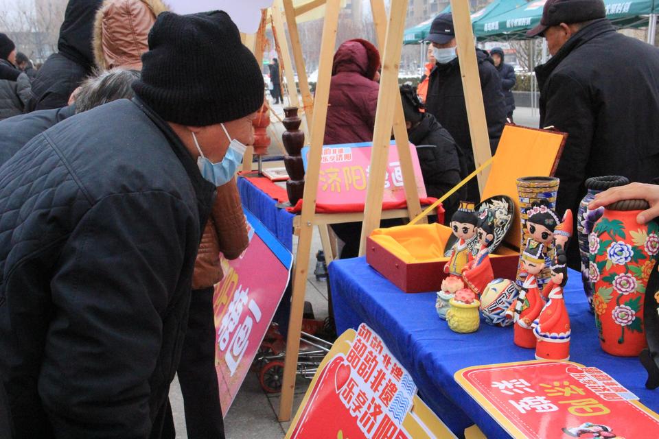 仪式现场,国潮品牌、非遗文化、年货购物、知名品牌、娱乐活动、特色小吃、文艺演出、爱心集市8个板块近20个展区,古朴典雅的济阳黑陶,巧夺天工的蛋壳雕,香气扑鼻的垛石驴肉,喜庆吉祥的精美年画......琳琅满目的非遗、手造、美食、年货以及民俗表演让人眼花缭乱,年味十足的场景让人流连忘返。