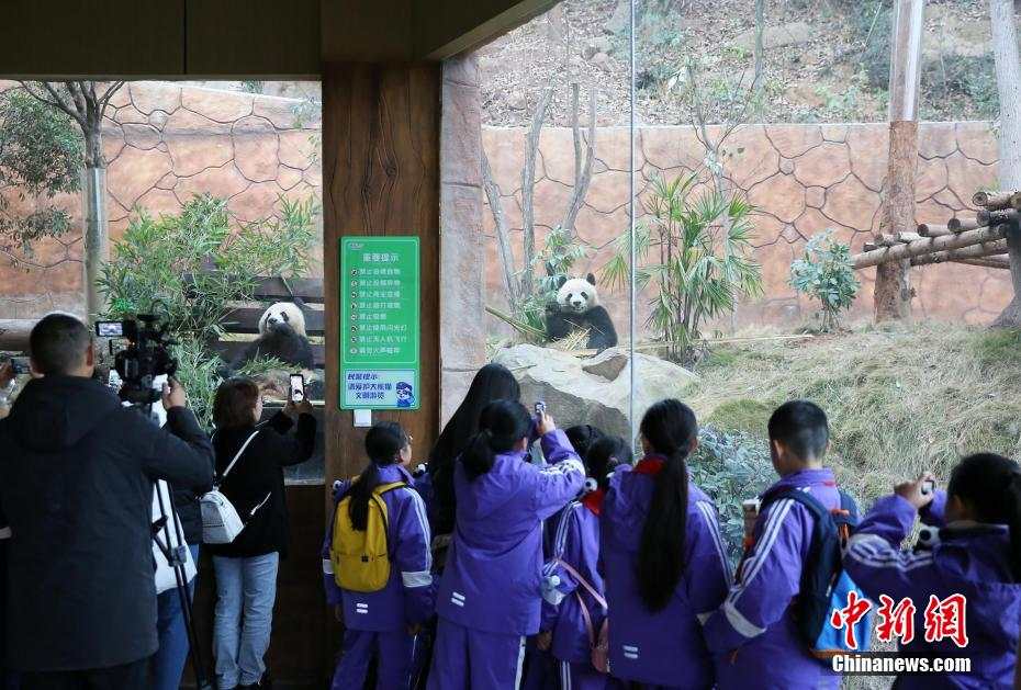 1月18日,重庆永川乐和乐都动物主题乐园的四只大熊猫“青花”“青露”“巧月”“爱莲”正式与游客见面。据悉,四只大熊猫来自中国大熊猫保护研究中心,经过隔离适应期后,于当日正式与游客见面。