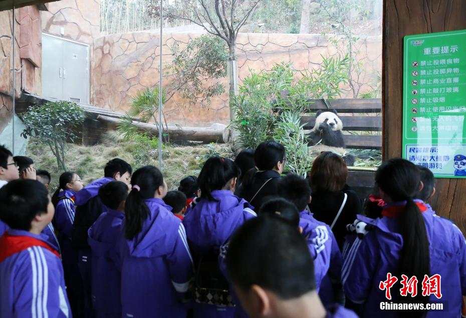 图为重庆新添的大熊猫“爱莲”吸引参观者眼球。王成杰 摄(中国新闻网)
