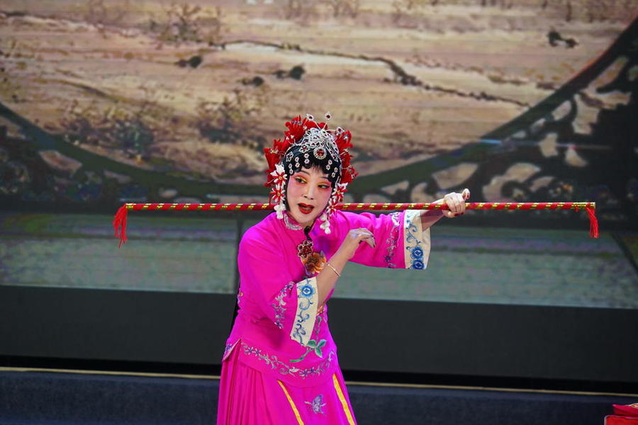 一曲欢快明丽的戏歌《颂善城》拉开了晚会序幕,演员们身着华丽服装,脸上画着精致妆容,一招一式,一颦一笑,无不展现出戏曲艺术的独特魅力。京剧《诗文会》选段“喜盈盈进画堂”,融合了富有民族特色的音乐唱腔,营造出喜庆浓郁的节日气氛。