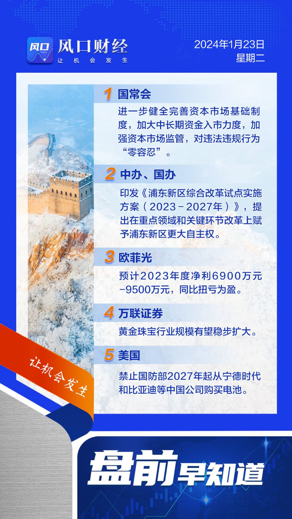 A股盘前:国常会强调加大中长期资金入市力度;欧菲光2023年净利同比扭亏为盈