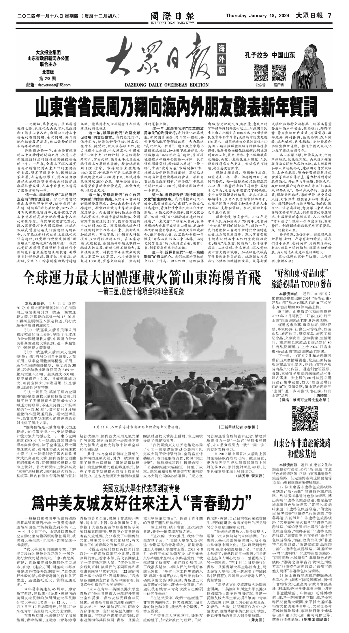 大众日报海外版:国际日报268期 全球运力最大固体运载火箭海阳首飞