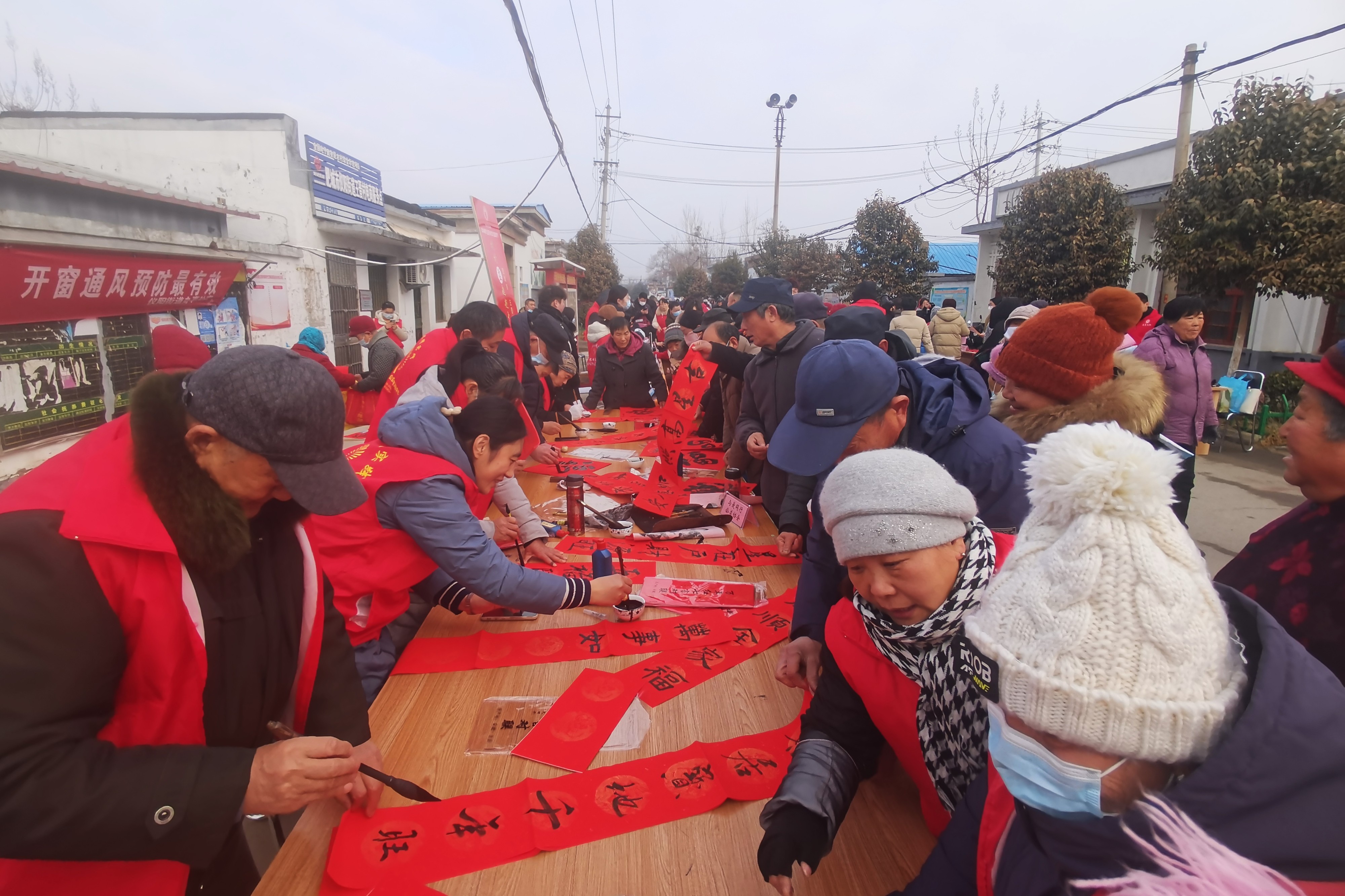 挥毫泼墨写春联,迎春送福展年味。在仪阳街道王晋大集,写福送春联“摊位”上人头攒动,爱泽人公益协会、与爱同行公益协会数名书法志愿者一字排开,饱蘸墨汁、浓写年味,一幅幅春联、福字跃然纸上,拿到手中的群众喜悦之情溢于言表。