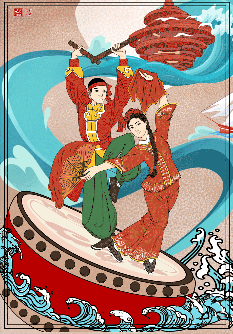 动图手绘·山东非遗|胶州秧歌:从田间地头“扭”上国际舞台