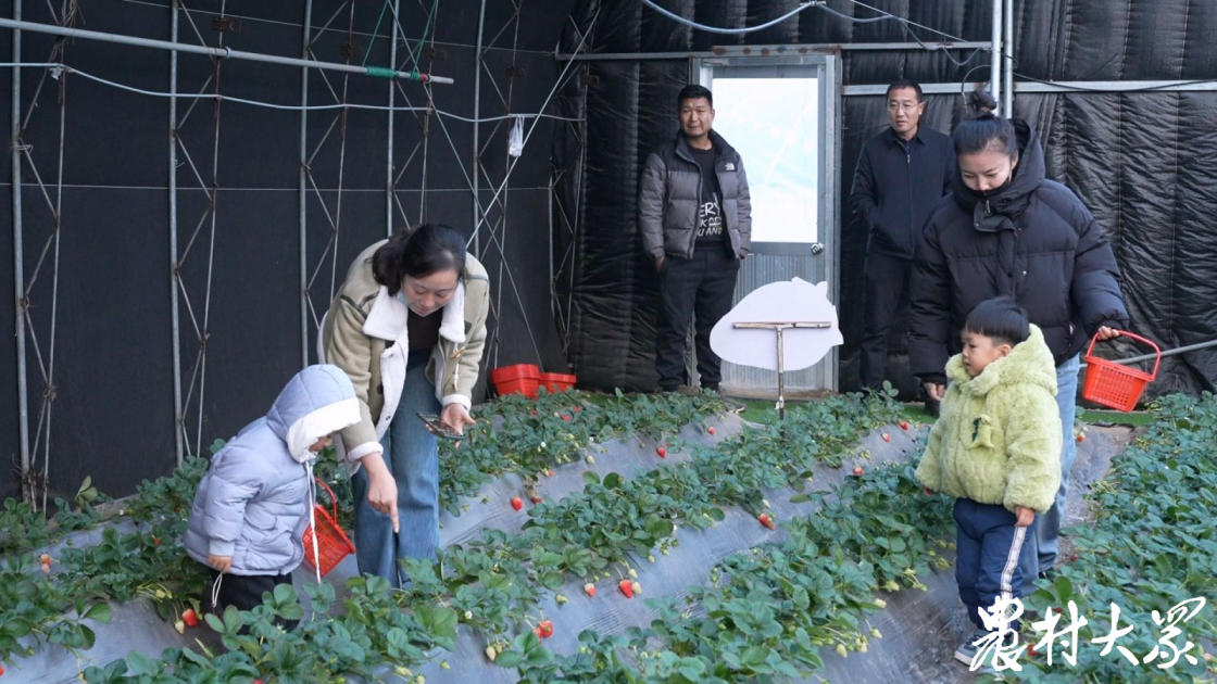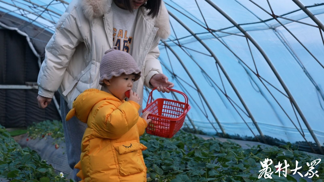 2024年1月11日,太阳即将落山,潍坊市寒亭区鸿征草莓采摘园里却依然热闹着。三个小朋友在家长的带领下,戴着毛线帽,手提采摘篮,兴致勃勃地穿梭在草莓大棚里,笑声和欢呼声此起彼伏。在这个寒冷的季节,“大棚游”成为市民们亲近自然、放松心情的好去处。
