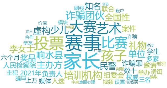 从关键词云图可以看出,“赛事”“家长”“投票”“大赛”等是出现的高频词汇。