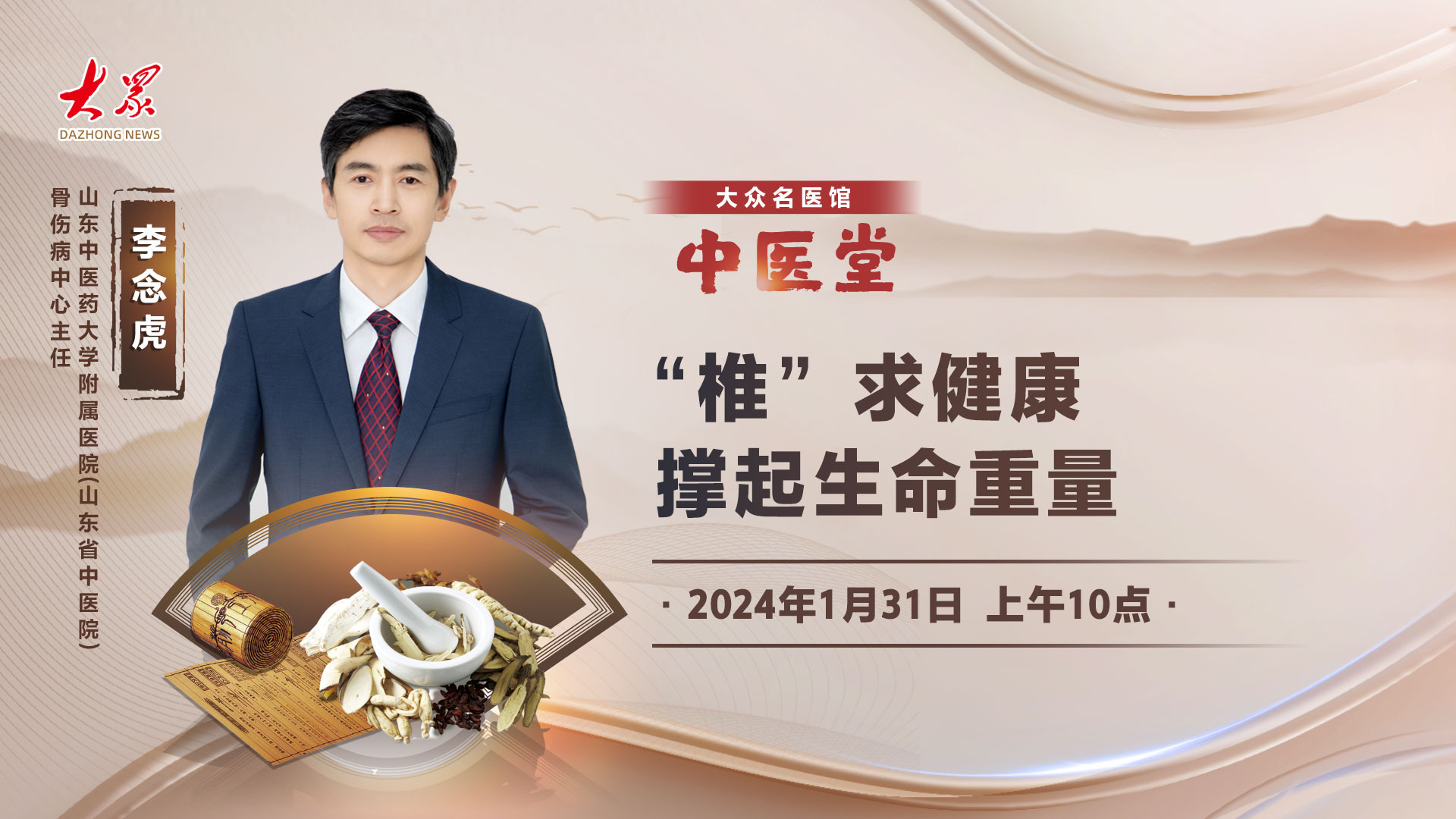 2024年1月31日上午10点,《大众名医馆·中医堂》邀请山东中医药大学附属医院(山东省中医院)骨伤病中心主任李念虎做客直播间,为大家全面讲解关于脊柱的那些事儿。
