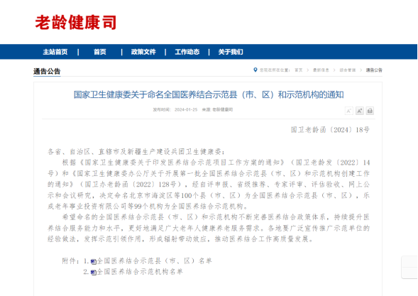 近日,国家卫生健康委印发通知,命名全国医养结合示范县(市、区)和示范机构,招远市成功上榜。