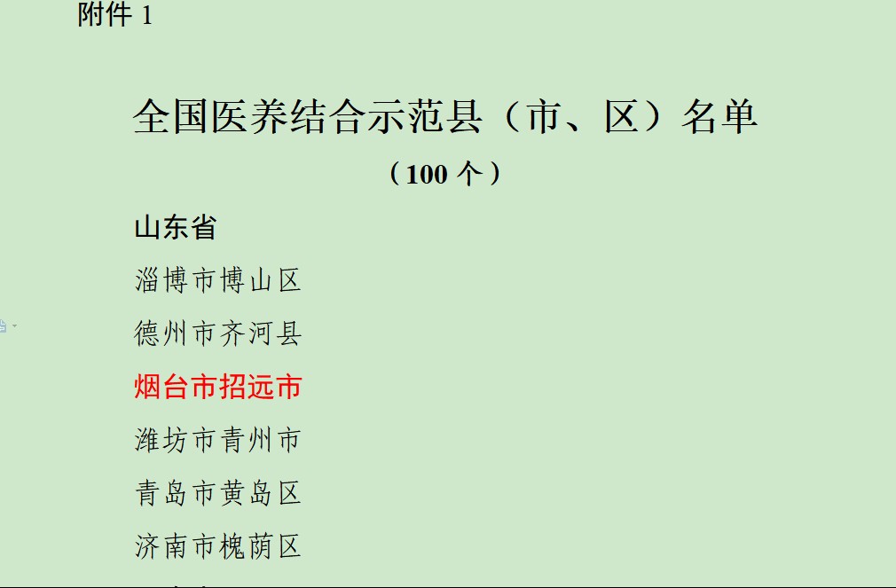 烟台市招远市上榜首批“全国医养结合示范县(市、区)”