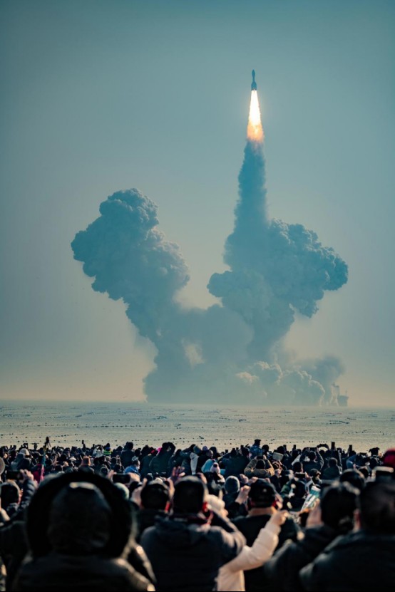 1月11日,引力一号在山东海阳附近海域成功发射。云上天镜拍摄