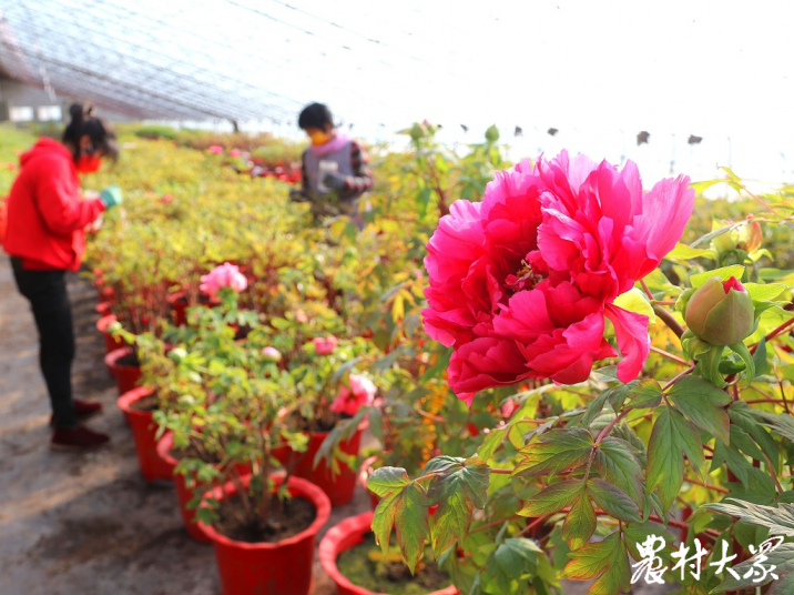 一盆盆催花牡丹将在春节期间发往全国各地。