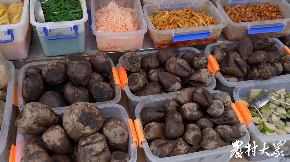 “颜色淡的疙瘩头是原味的,颜色深的是五香的。”摊主申立福在口镇卖咸菜已有20多年,“平时一天能卖300-500元钱,年关的大集卖得更多,一天收入是往常的一倍!”