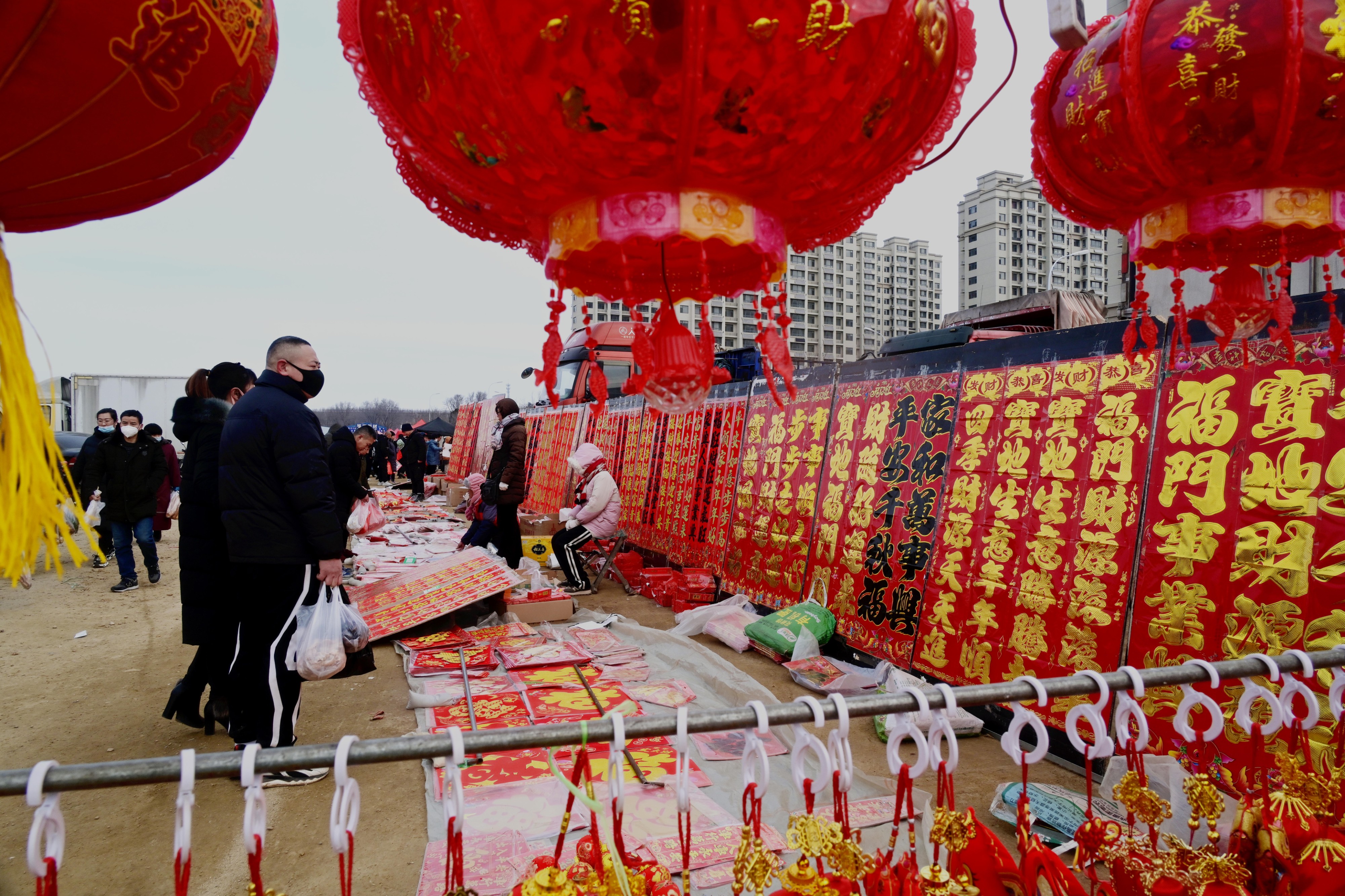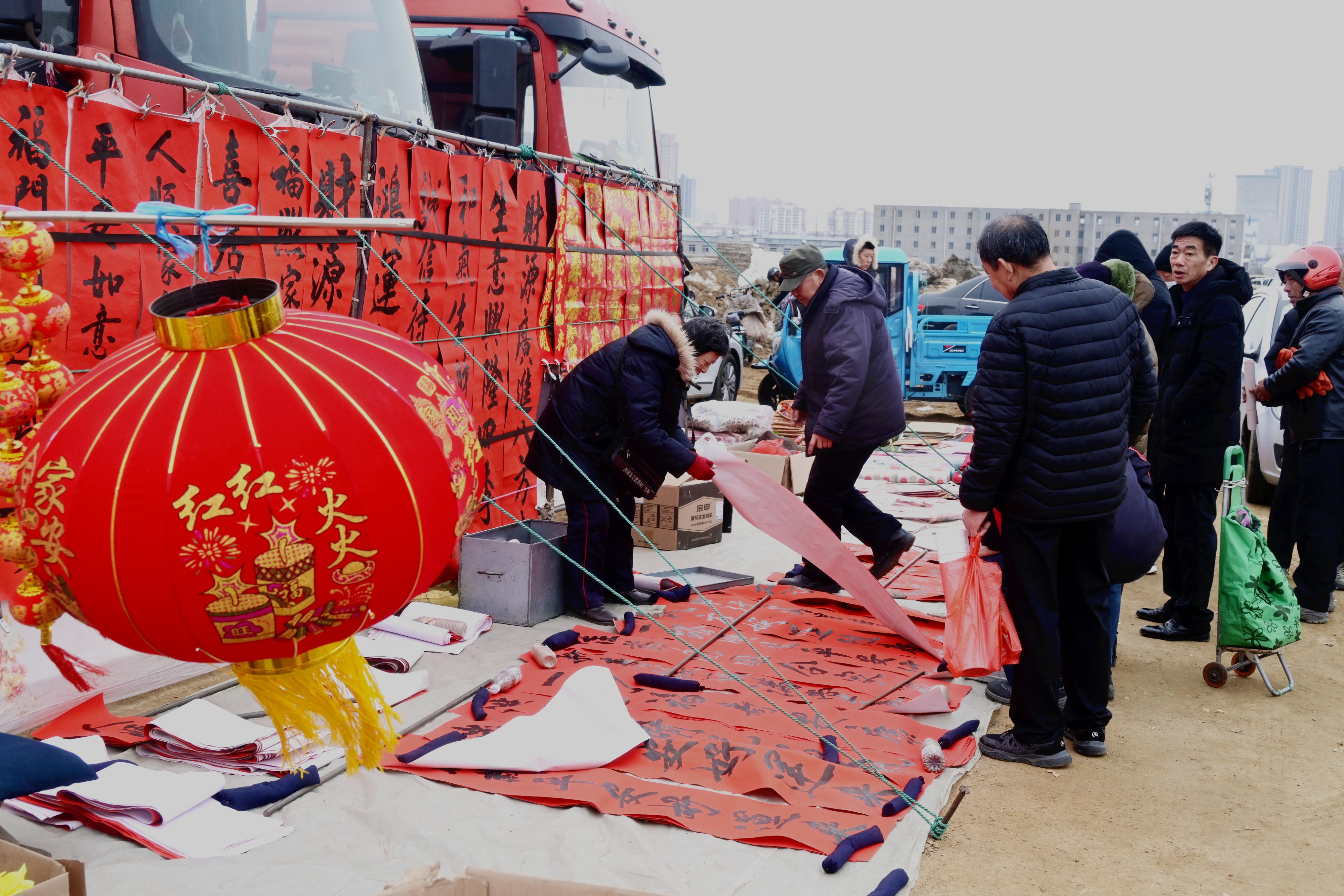 卖春联的摊位是集市上年味儿最浓的地方,一副副春联,一个个福字,一对对红灯笼,映衬着淳朴的笑脸,洋溢着春节的喜庆,也承载着人们对新年的美好期待和祝愿。