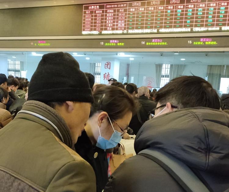 车站工作人员透露,有3日的列车仍未能进站。售票厅前有广播通知:因天气原因,2月4日汉口站晚点列车可以在十日内在汉口站办理退票。火车站内也安排了工作人员、志愿者、协警等指导乘客办理退票、改签。
