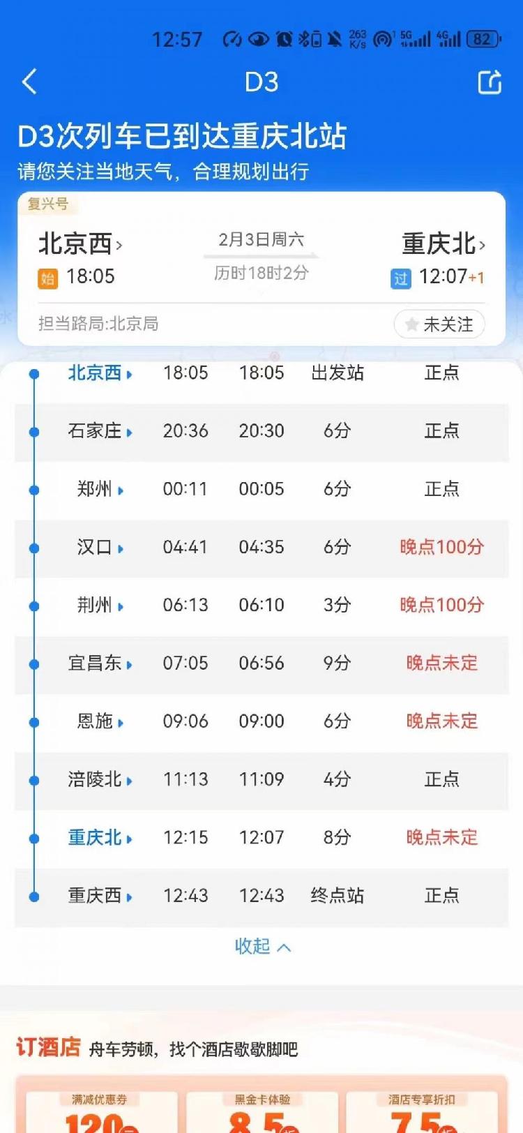 封面新闻消息,D3057,早上7:23从上海始发,耗时7小时后到达魏霖的家乡宜昌。