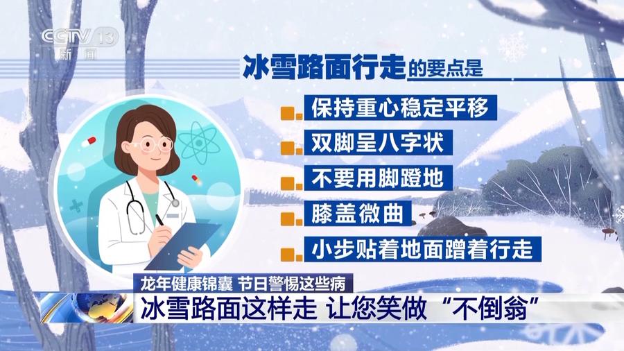 北京积水潭医院脊柱外科主任医师 袁强:在冰雪的路面上,千万别因为手冷把手给揣到兜里了,一旦摔了,你手抽不出来,少了一个支撑。你只有手能拿出来,人才有一个自动平衡的反应,你要揣兜里,这一摔以后摔得很死,有时候直接摔成脑震荡。