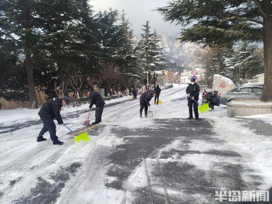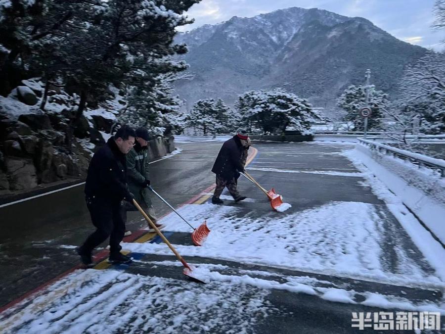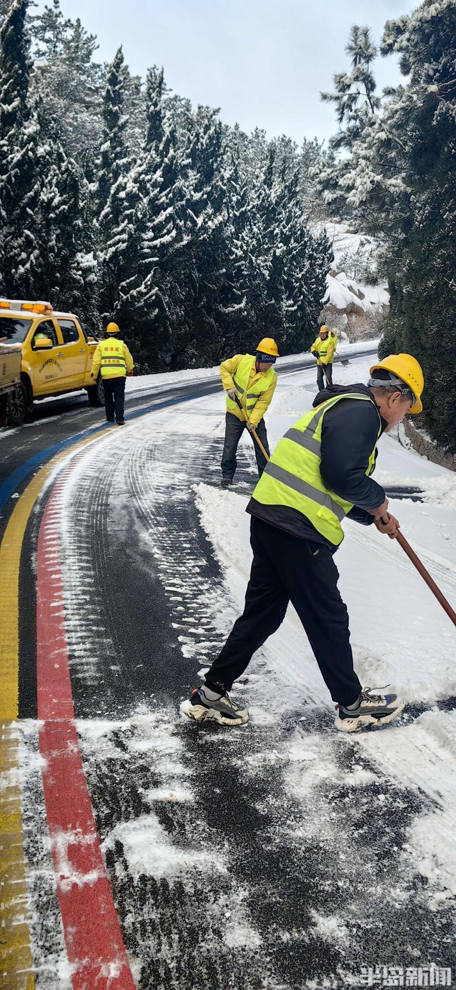2月4日晚,岛城迎来强降雪天气,各路段出现积雪。为保障道路通行安全,崂山风景区管理局加强与区交通运输局联动,提前研判、精密部署,崂山太清、仰口、华严、巨峰、流清等游览区第一时间启动应急响应预案,连夜开展清雪化雪工作,全力保障群众出行安全。