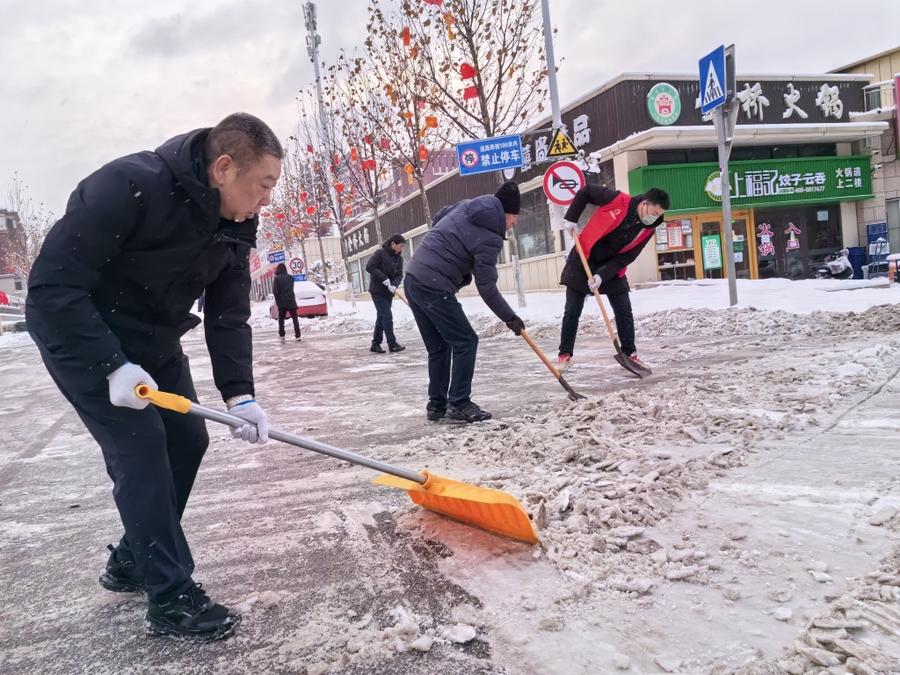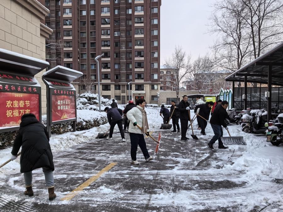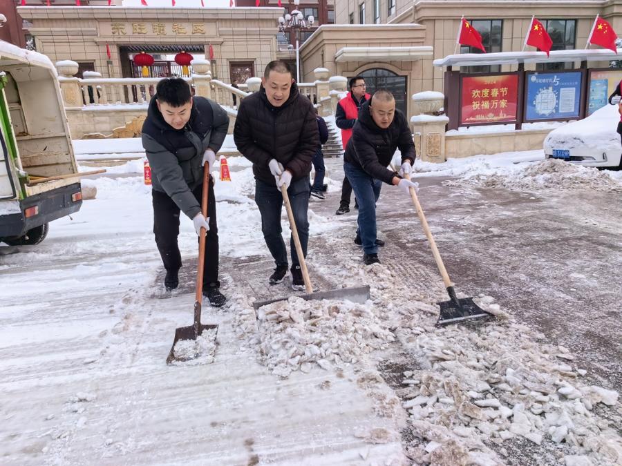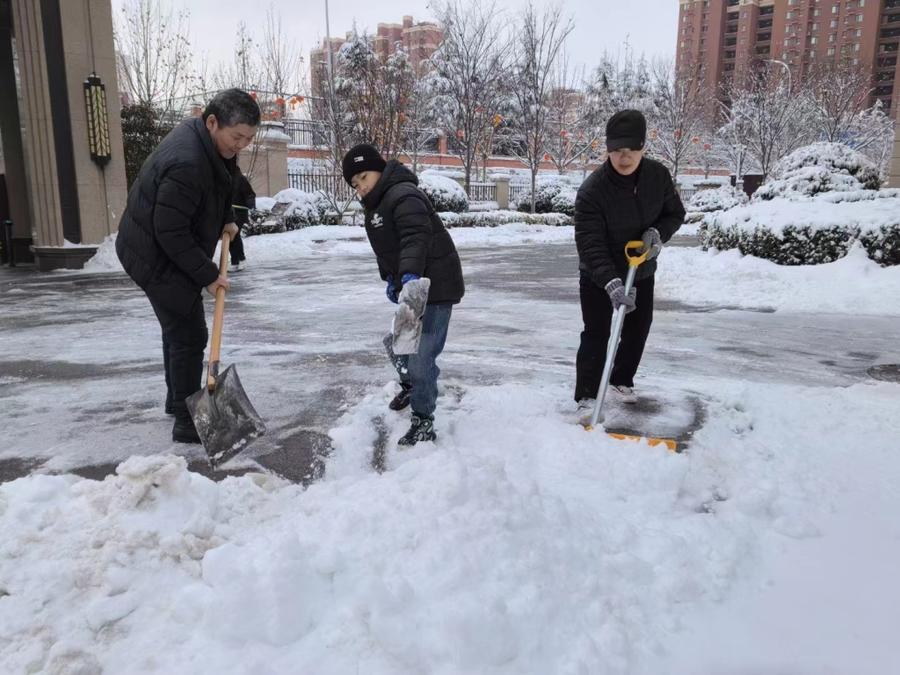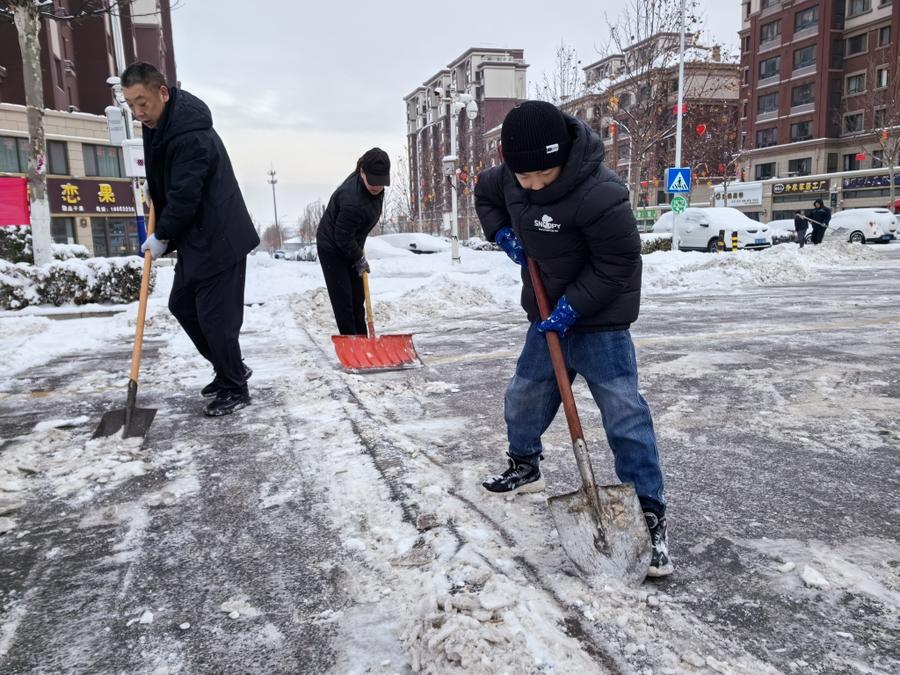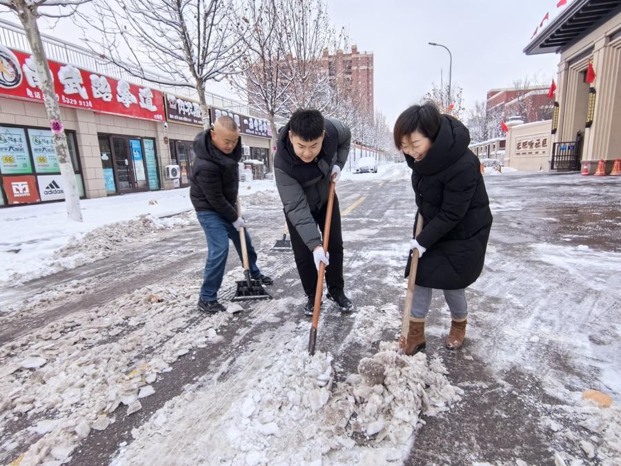 在清雪现场,还有很多居民、新市民纷纷加入清雪队伍。“我们在扫雪的时候,有新市民一家的爷爷、妈妈、孩子三代加入进来。后来聊起来,他们租住在我们这边,早晨在窗户上看见我们在扫雪,就下来一起扫雪。”李杨说,东旺疃社区创建“‘疃’聚一家人”党建品牌,提高社区治理水平,创新“1+1+N”工作法,做实做细“365便民服务”,激发激活新市民的认同感和自豪感,打造“人人有责、人人尽责、人人享有”的基层社会治理新样板。