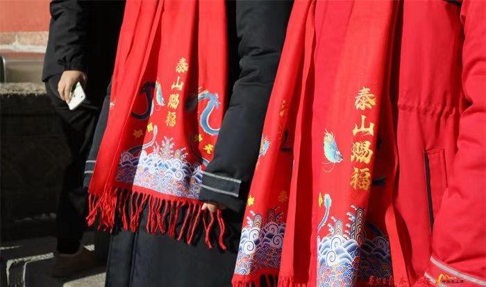 临近春节,为了营造浓厚的节日氛围,还推出了“御寒服新春送福”活动。活动期间,在景区门票预约系统点击“泰山+”共享御寒服,成功预约后,可在现场租赁时获得“新春大礼包”。新春大礼包提供两种选择,一种是“国山送福”春联大礼包,礼盒包含春联、福字、窗花等节日用品;另一种则是印有福山寿海、龙凤呈祥等图案的红色祈福围巾,寓意红红火火、喜迎新春。游客可根据自身需求选取心仪的礼包。(大众日报·大众新闻客户端记者 王洪涛 实习生 马蔚 报道 )