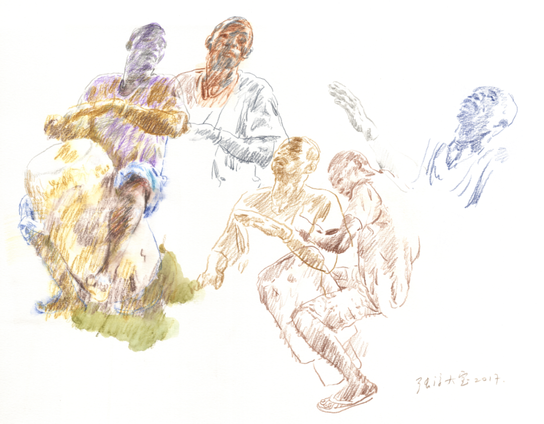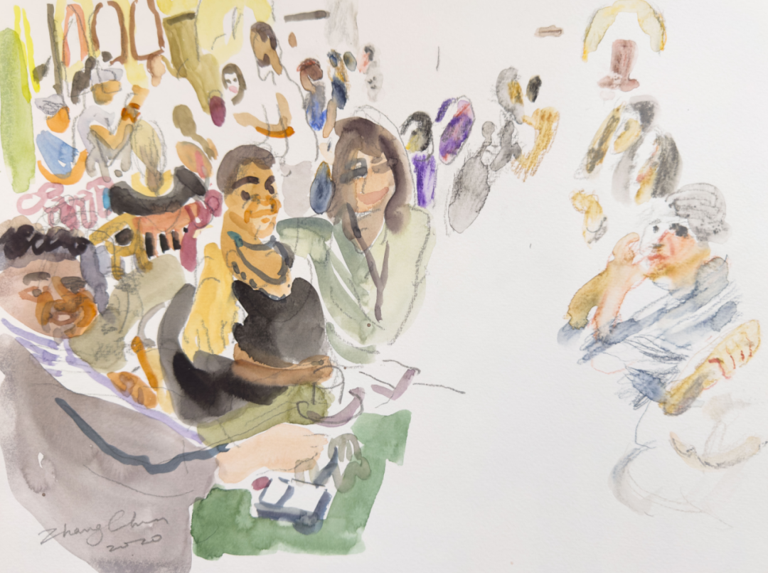 2018年,受中国驻约旦大使馆推荐,我赴约旦创作并参加“约旦国际当代艺术展及研讨会”。其间我用画笔快速记录了一些场景,大多都是聚在一起的人们。