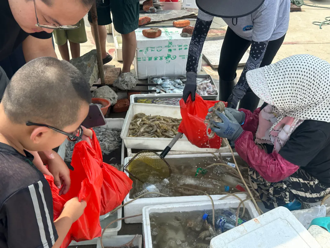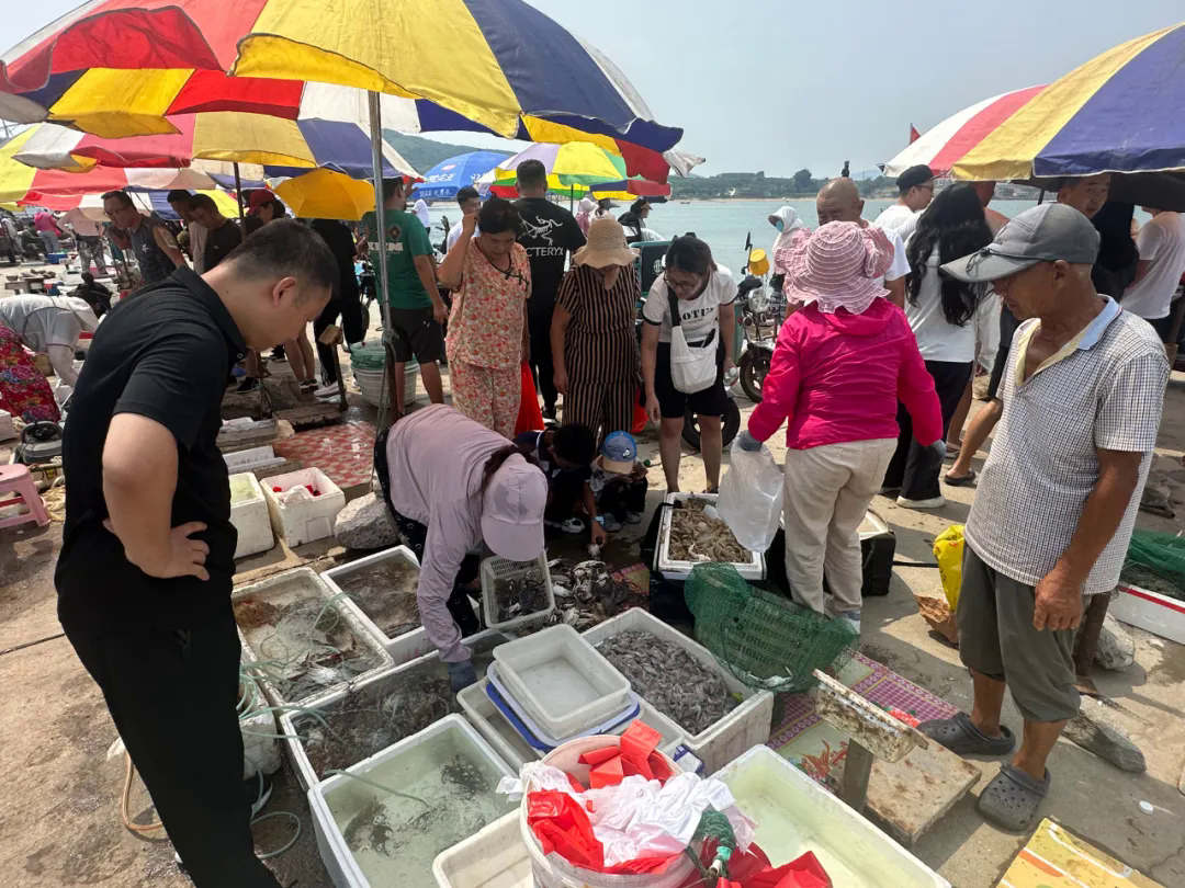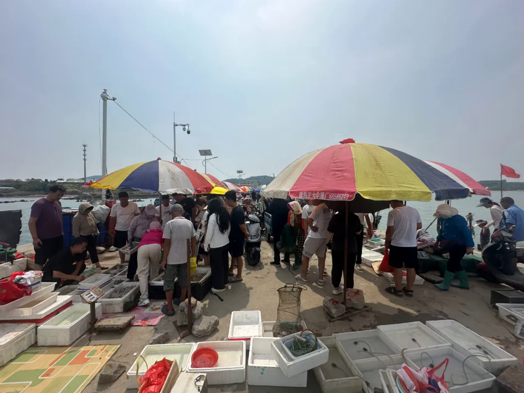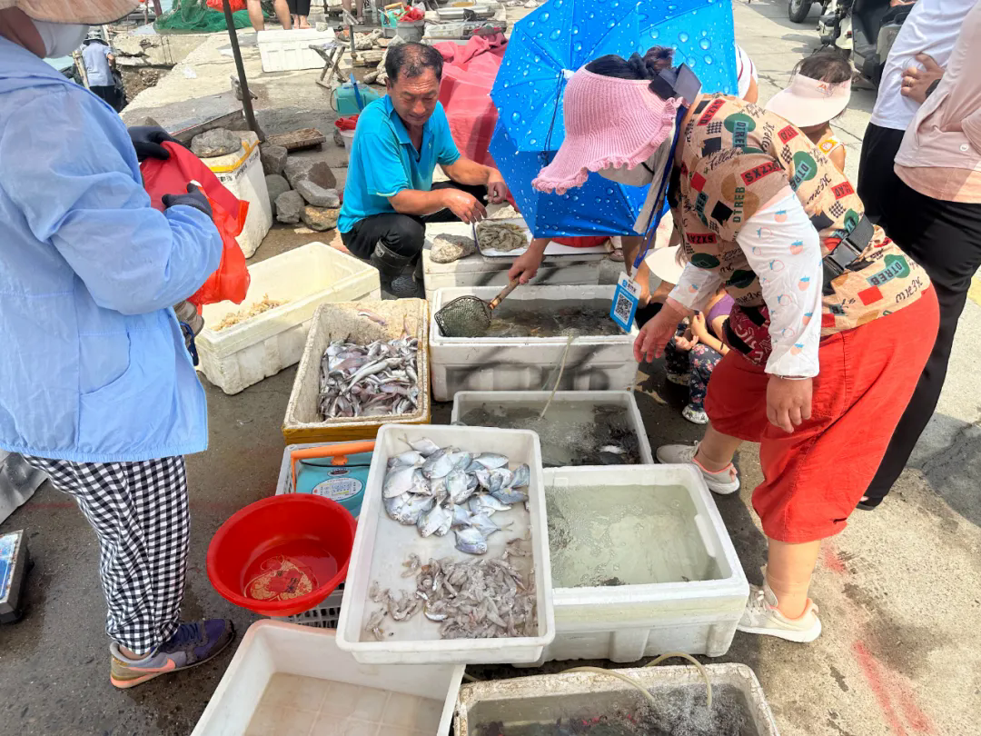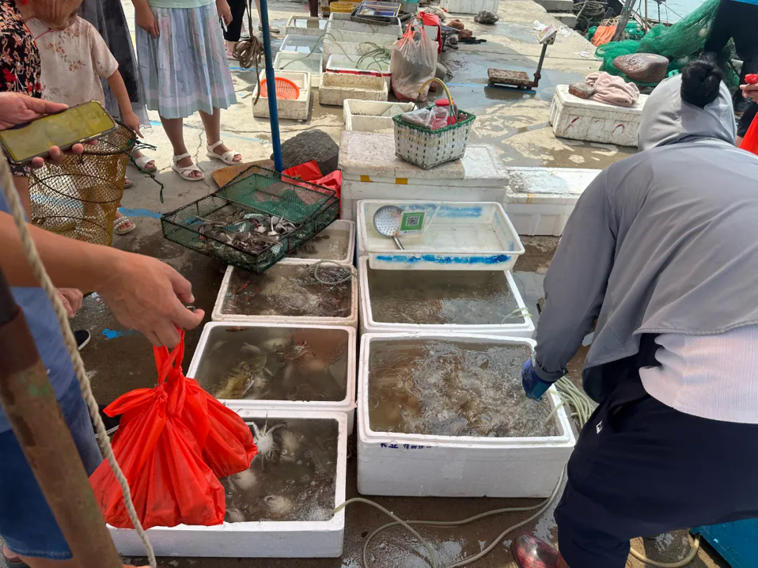 繁忙的即墨七沟二村码头市民纷纷围住进行挑选现场好不热闹↓↓