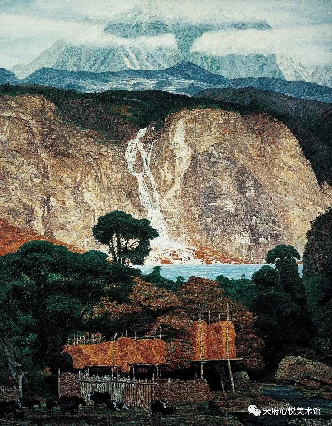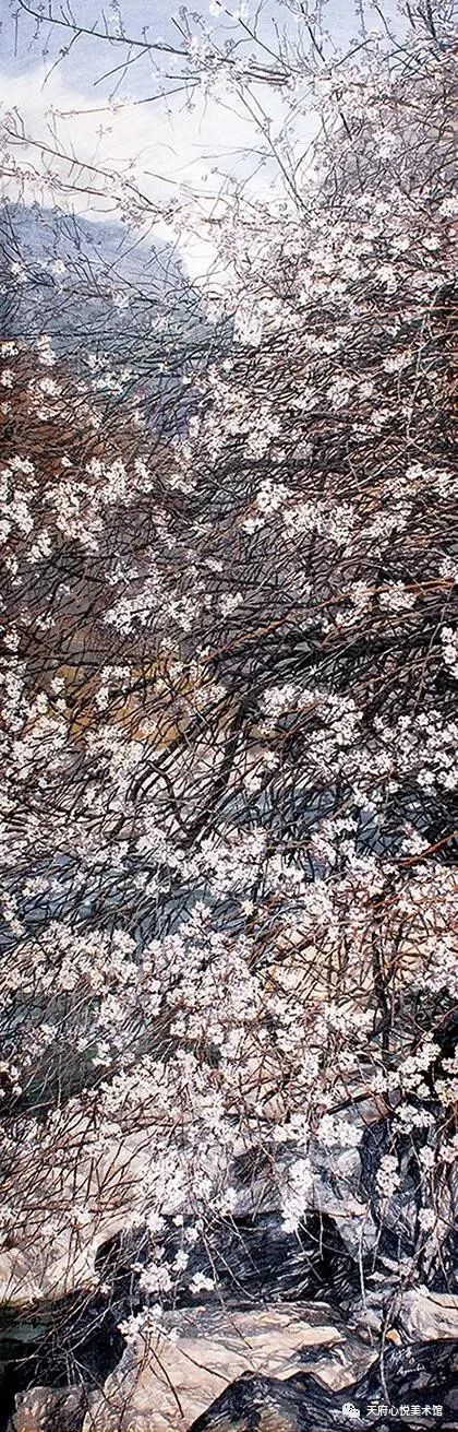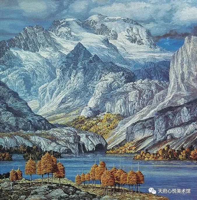 其实,何冠霖执迷于山水田园,和他的经历有着密切的关联。他出生于军旅之家,上世纪70年代,从父命,当了兵,常被派到川西高原执行任务。高原上那绚丽的自然山水,那舒缓的牧歌式的田园生活,对于这个来自常年云遮雾罩盆地、对“文革”时期惨烈内斗深怀恐惧和迷惑的年轻人,有着怎样的巨大反差和吸引力,是不言而喻的。高原那恍若隔世般的自然人文图景令他震撼和沉醉。自那以后,他的绘画生涯就再也没有离开那片山水。当然,作为一个正处在创作峰值期的中年画家,有人会质疑他沉湎于山水自然,而对中国当下的现实景况采取某种回避、逃离的人生立场和态度,但十多年来他对自然的敬畏和忠诚却是无可厚非的。