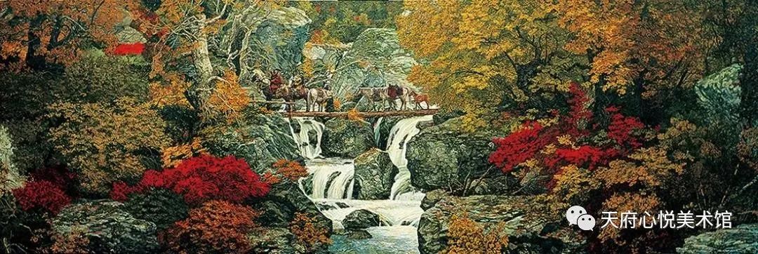 不得不承认,每次在观赏何冠霖的风景作品时,确让人有一种动情而舒坦的感受,观乎:天高云淡,风和日丽,枫红麦黄,自在自然;听乎:鸟啼水吟,风鸣叶摇,羊咩牛哞,交响混成,犹如天籁。特别是人在困顿焦虑时,何冠霖画中的田园净境让人平息,让人释怀。