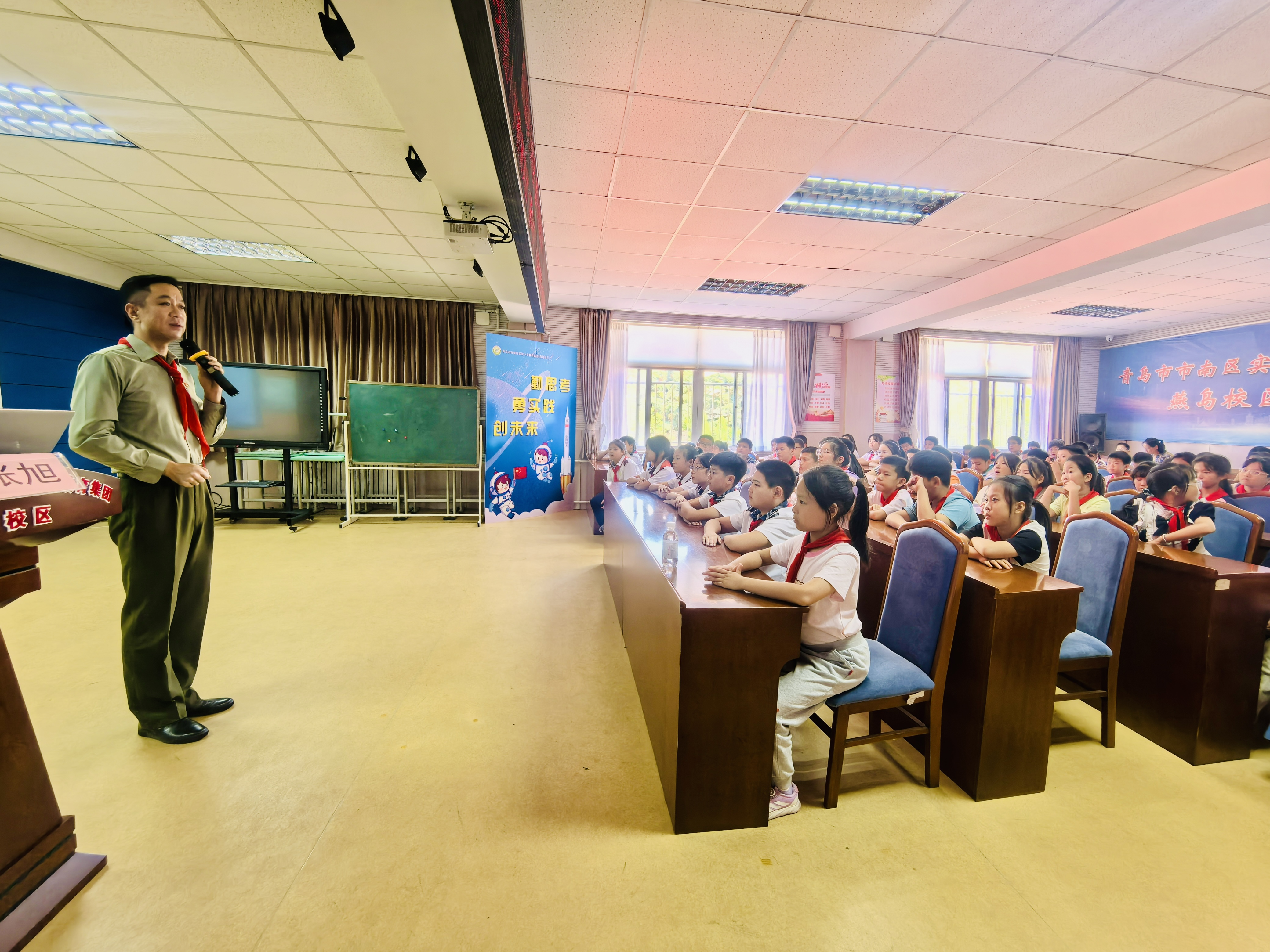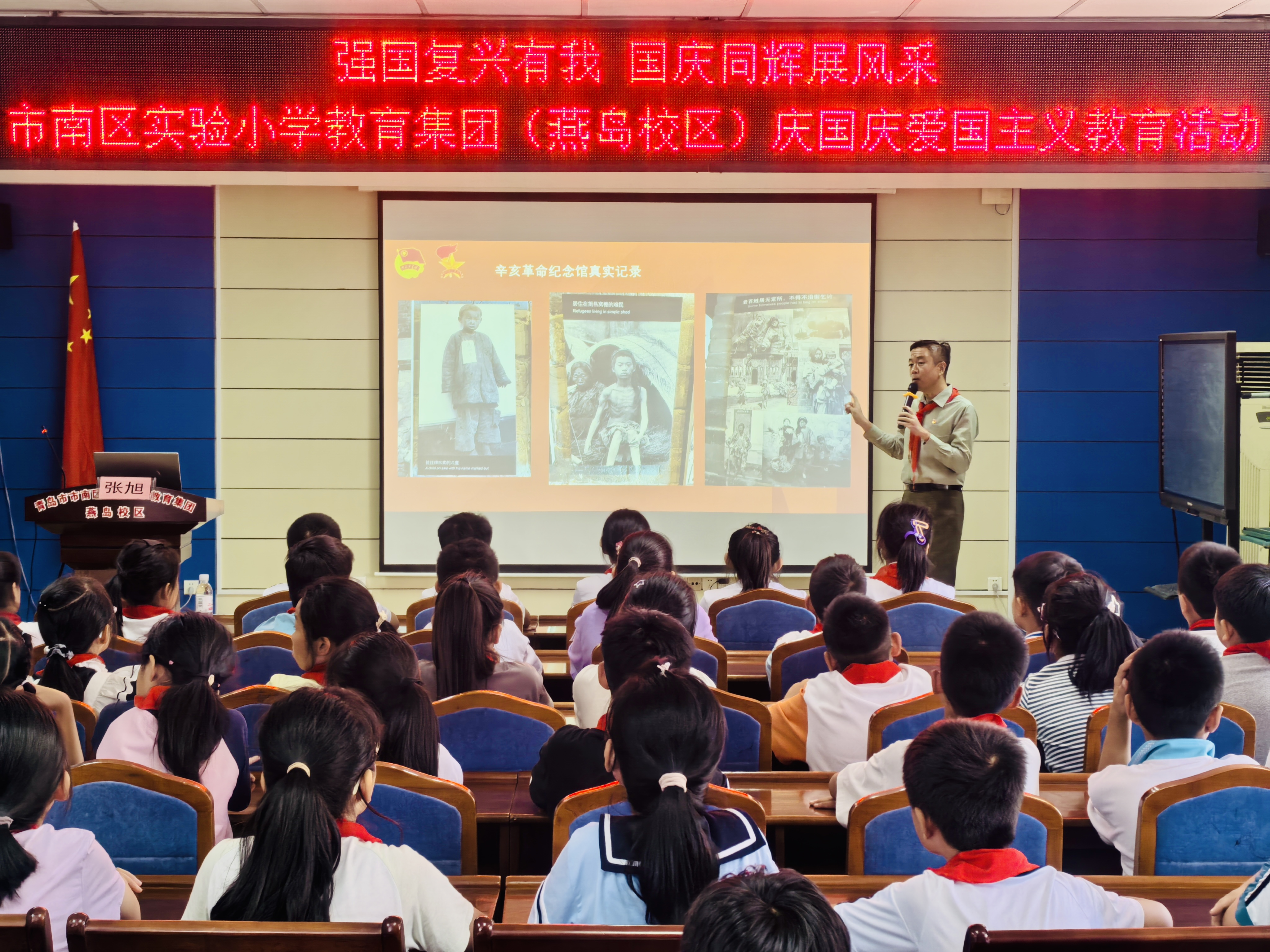 为弘扬爱国主义精神,积极培育和践行社会主义核心价值观,9月27日,青岛市南区实验小学教育集团(燕岛校区)以“强国复兴有我 国庆同辉展风采”为主题,开展爱国主义讲座。此次讲座特邀青岛市少先队校外辅导员、青岛市青年志愿者协会副会长、青岛滨海强军宣讲团讲师张旭担任主讲。