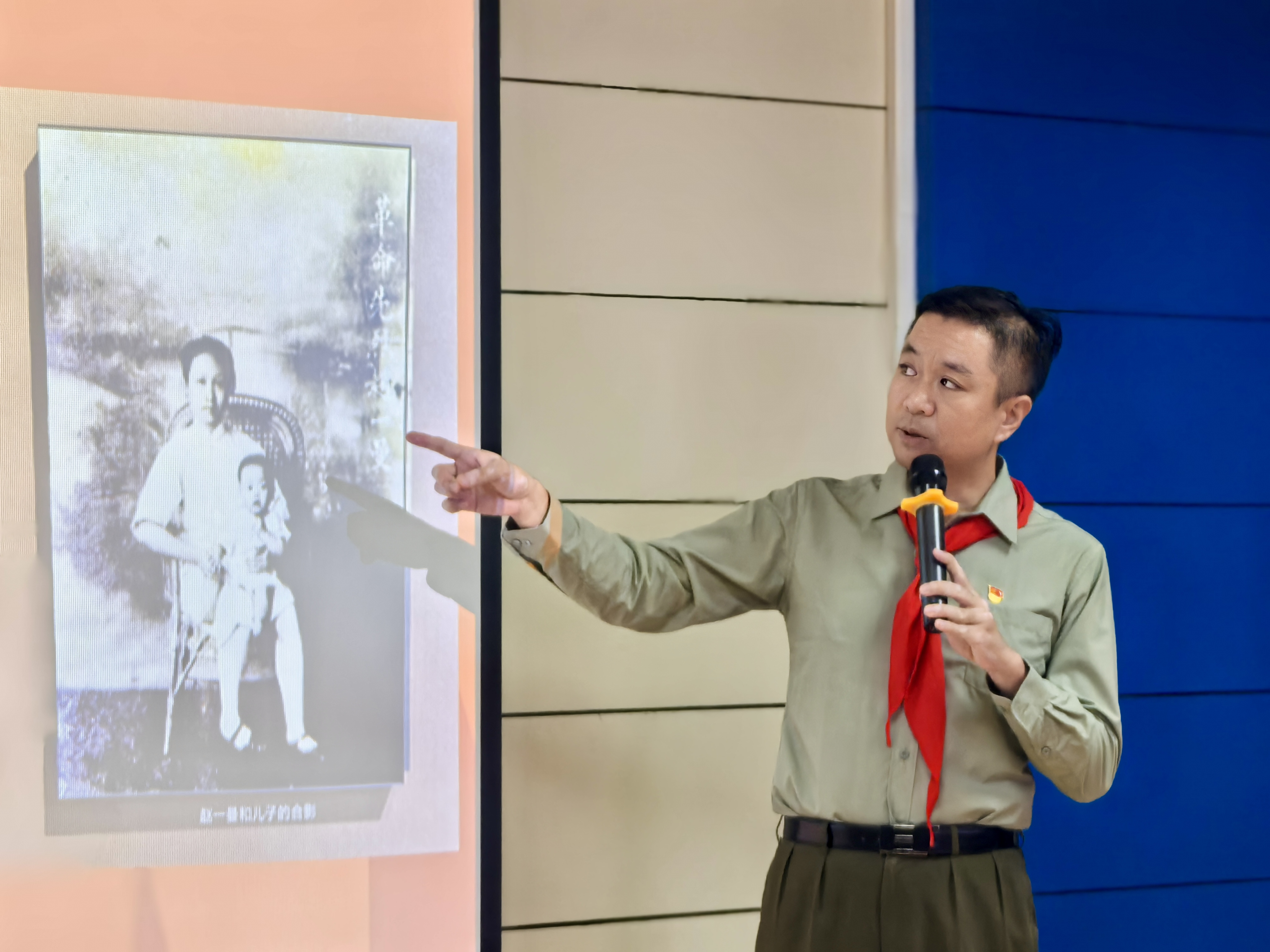 随后张旭老师向队员们讲授了中国人民解放军各军兵种知识,讲授了抗美援朝志愿军的真实事件。他不仅深情讲述了战争年代革命烈士赵一曼的英勇事迹,而且带来了和平年代战斗英雄人民海军高安斌、戍边烈士陈红军、英雄团长祁发宝等英雄故事。队员们被那些感人肺腑的故事深深吸引,眼中闪烁着泪光,心灵受到了深刻的触动。